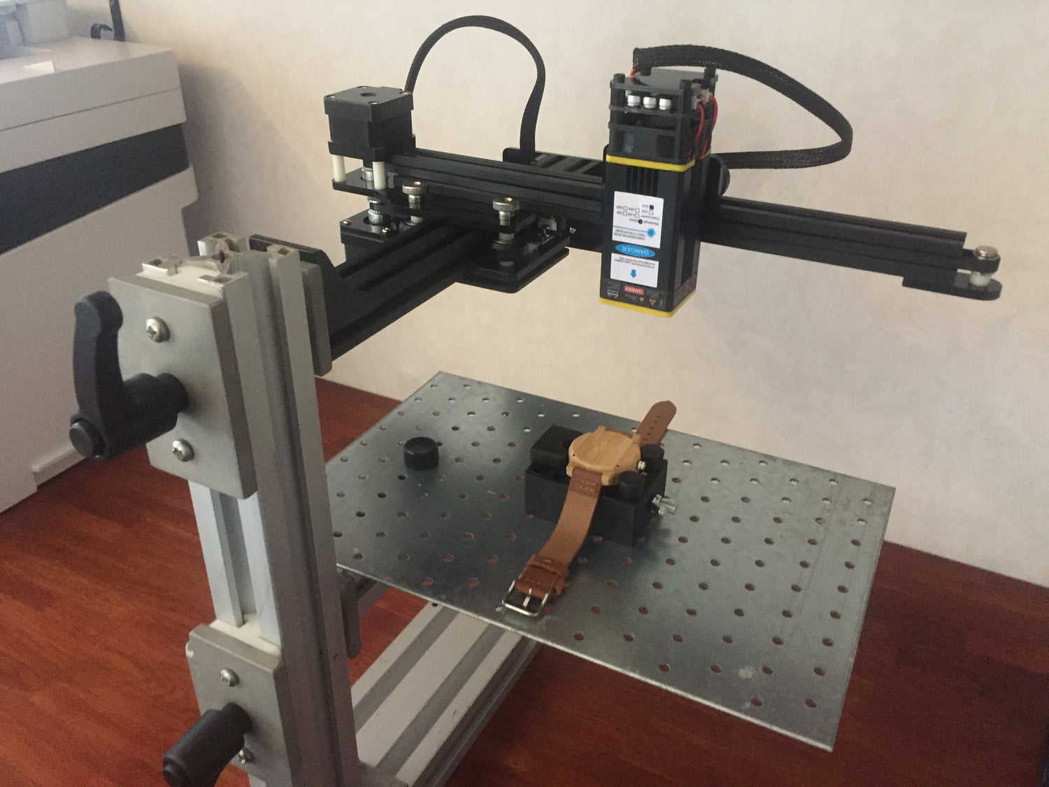 När vi graverar foton på trälådan går det väldigt sakta! Det tar ca. 1,5 timme att gravera ett foto på trälådan! Det går inte att köra med högre effekt fortare för då får man ingen "färg".