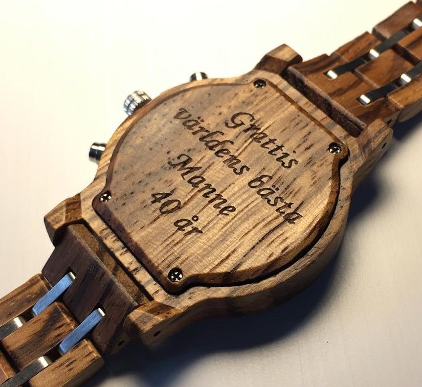 Alla klockor levereras i trälåda som du kan gravera som du vill. Välj bland våra förslag och lägg till egen text.....