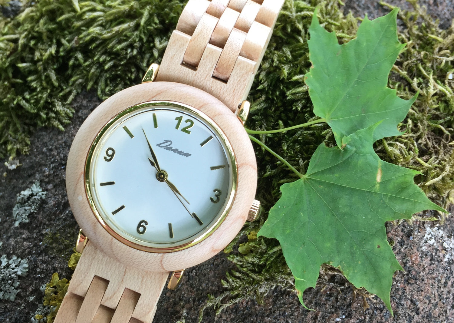 Trämaterialet till produktionen av klockor och armband kommer huvudsakligen från spillmaterial ifrån möbelindustrin!