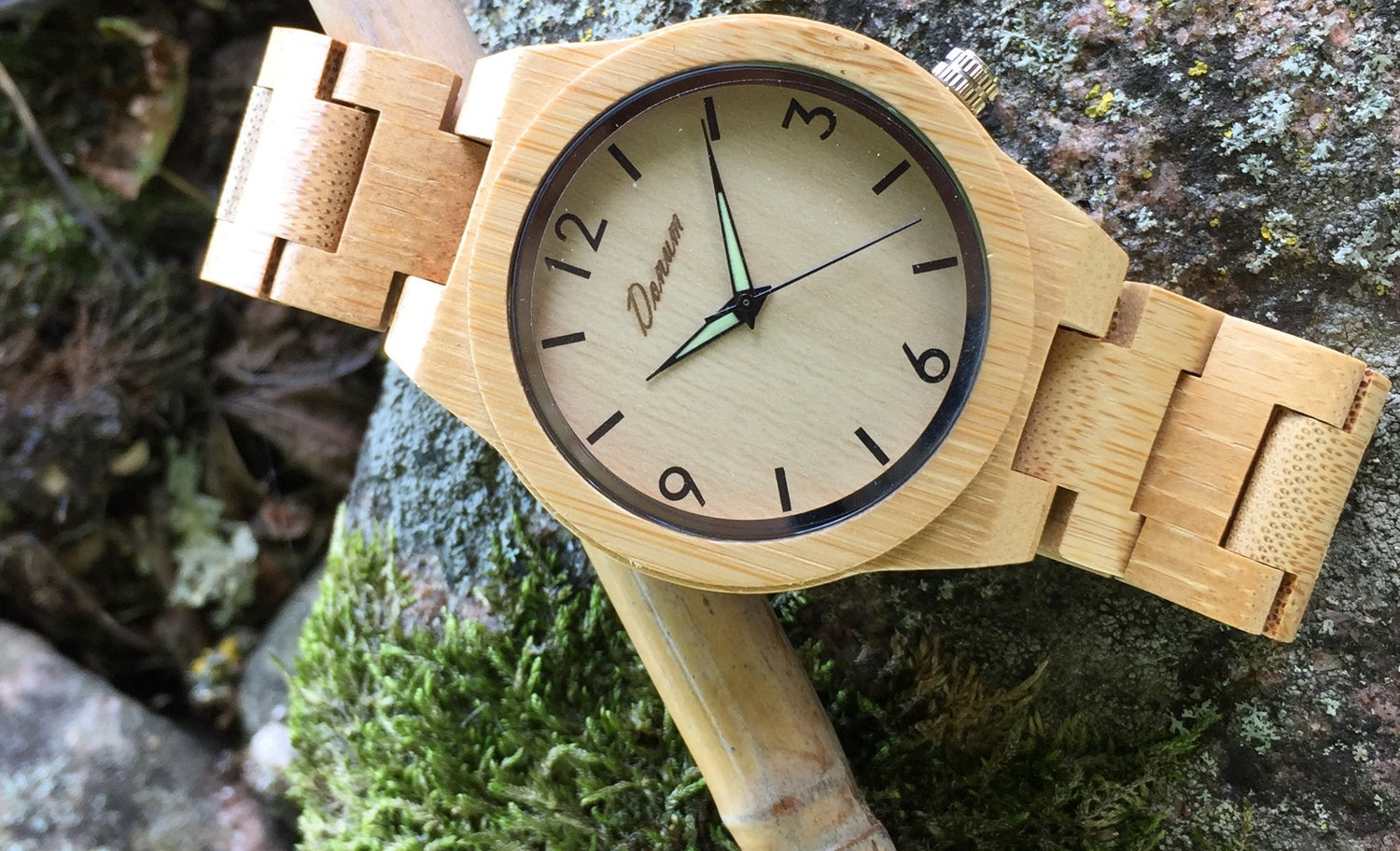 Trämaterialet till produktionen av klockor och armband kommer huvudsakligen från spillmaterial från möbelindustrin!