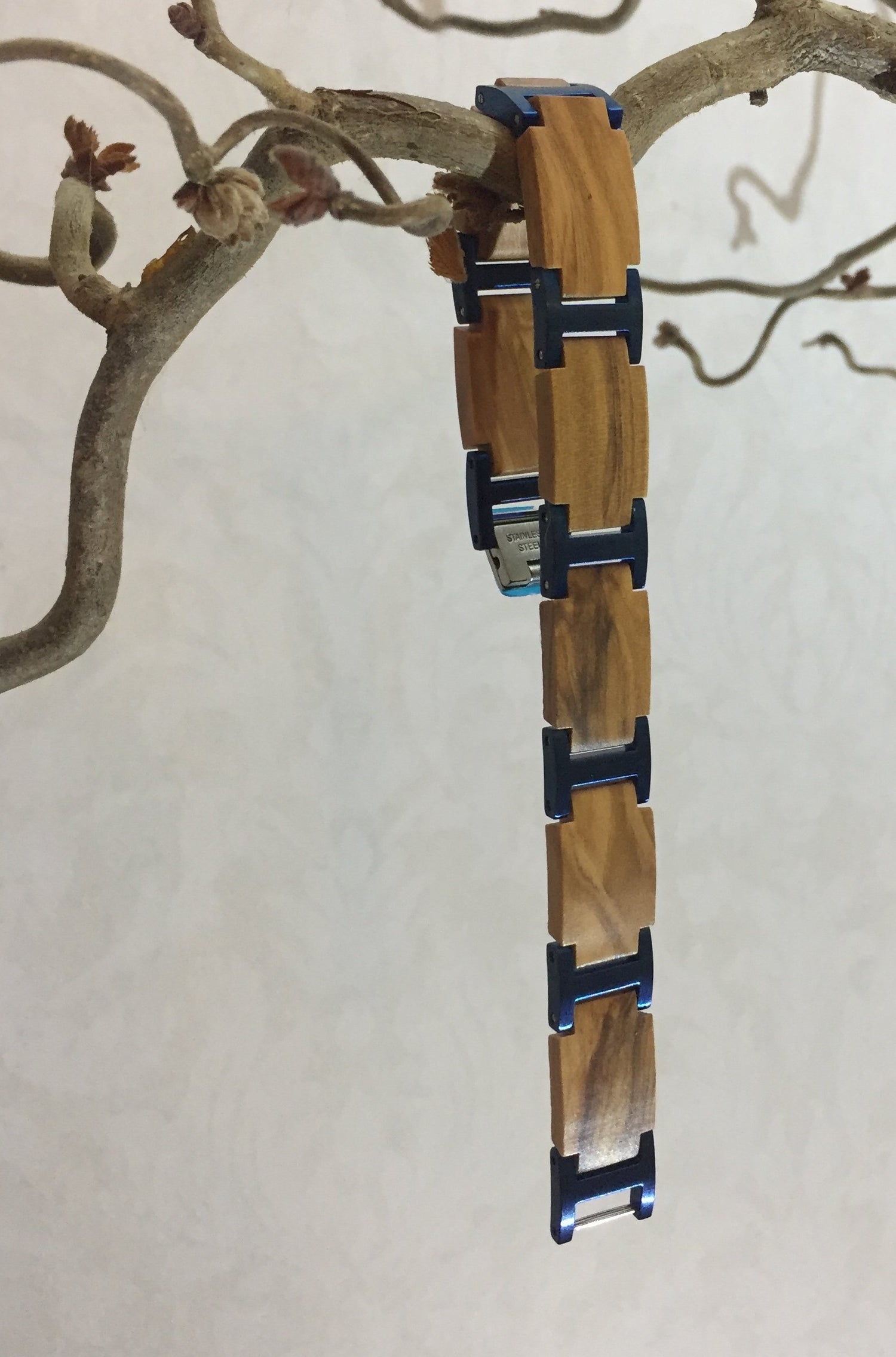 På detta armband ökar längden med 25 mm för varje trälänk.