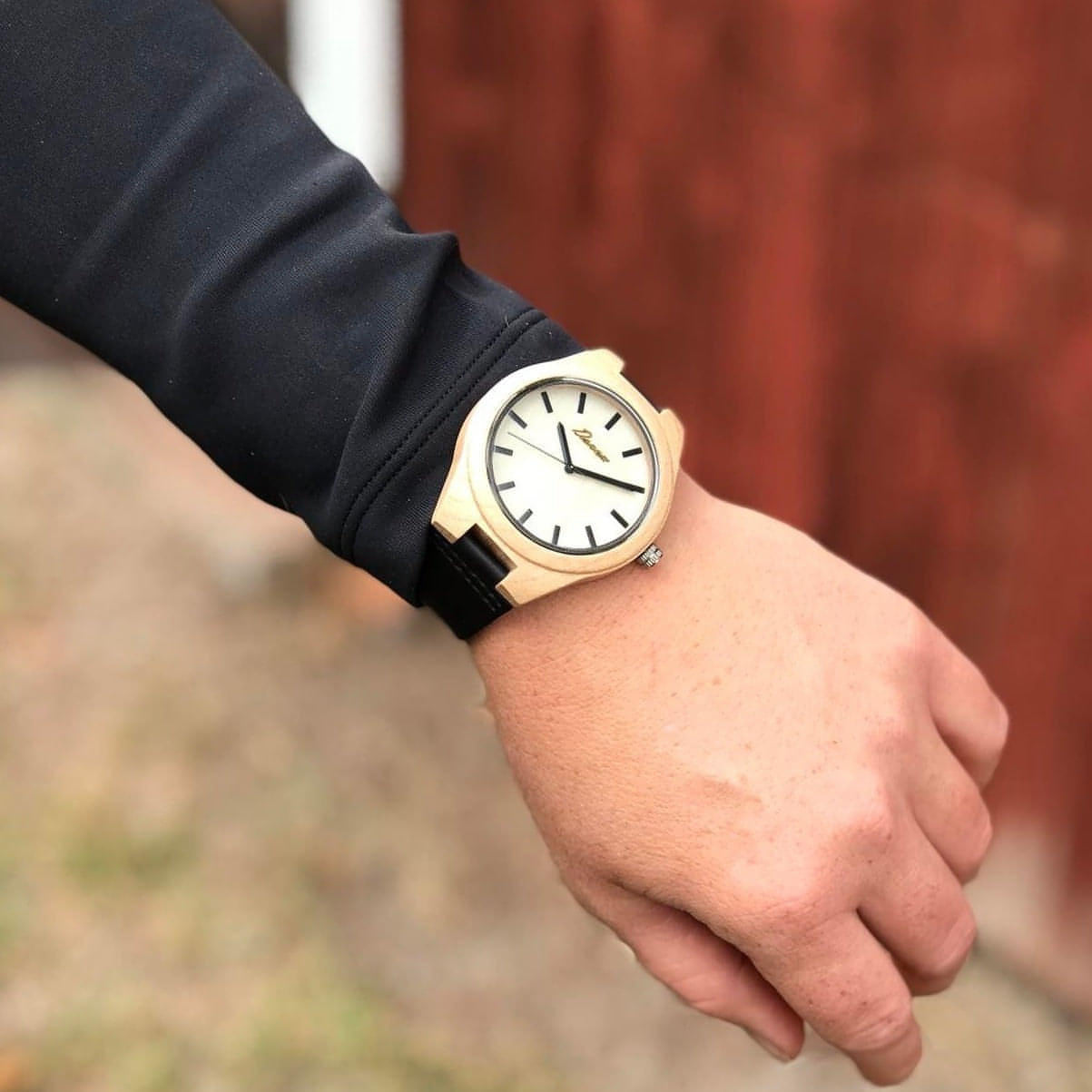 Trämaterialet till produktionen av klockor och armband kommer huvudsakligen från spillmaterial ifrån möbelindustrin!